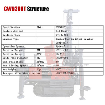 Станция CWD200T для бурения водяных скважин предназначена для многогранных бурений в различных геологических образованиях.Он использует бурение грязью для мягких образований и воздух DTH молоток для бурения скалы, с давлением воздуха для сброса шлака, обеспечивающего значительно более высокую эффективность, чем традиционное вращающее бурение.